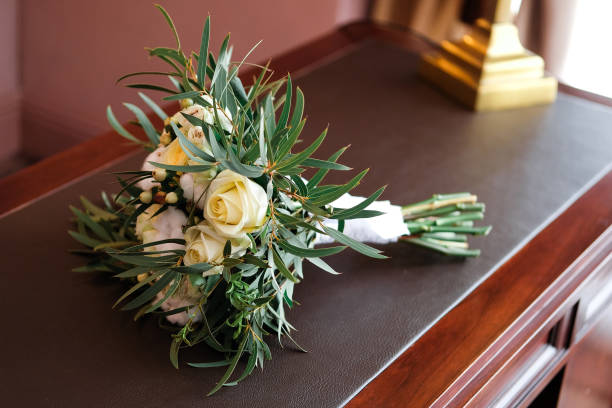 Source : https://www.gettyimages.com/detail/photo/beautiful-wedding-bouquet-lies-on-the-table-chest-royalty-free-image/1403293231