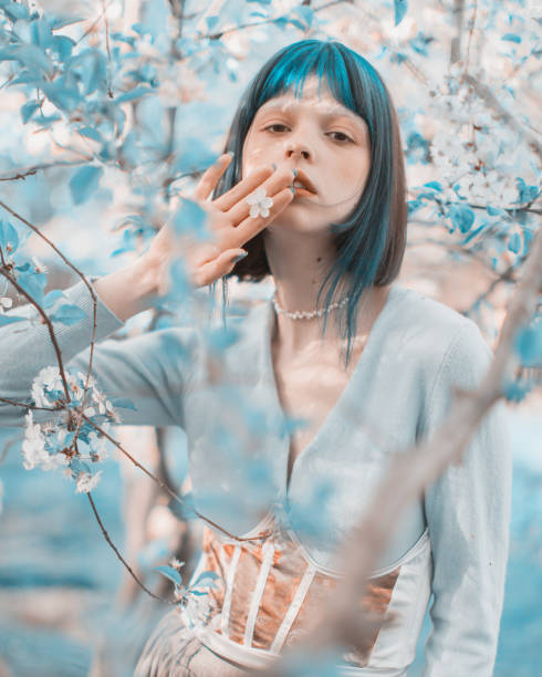 albino woman standing with hands in pockets - fashion stock pictures, royalty-free photos & images