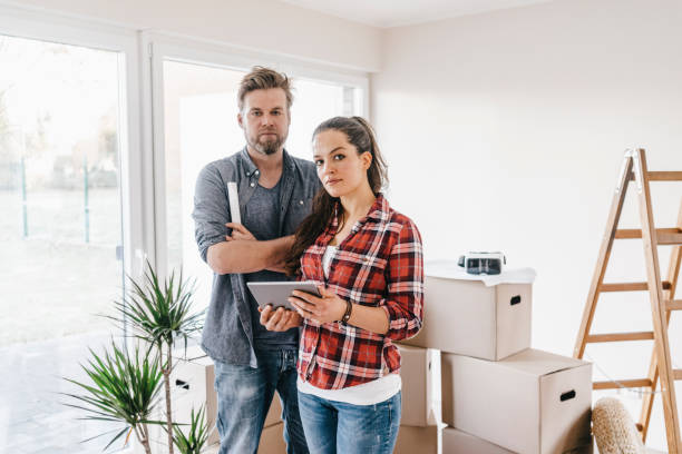 volunteers on ladders painting house - home decoration stock pictures, royalty-free photos & images