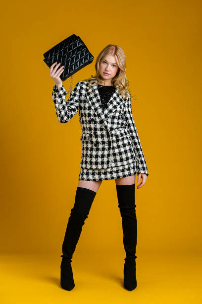 portrait of happy and fashionable woman - fashion stock pictures, royalty-free photos & images