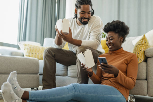 young couple in a cafe - junk food stock pictures, royalty-free photos & images