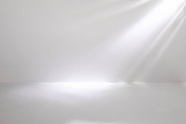 minimal empty black and white 3d room background with natural shadows. modern studio showcase with caustic effect, crystal reflections. stage with magic disco spotlights. - home decoration stockfoto's en -beelden