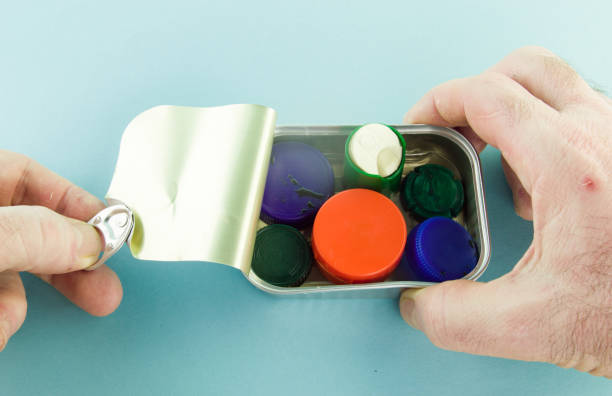 easy-to-open pull ring pulls with plastic plugs inside - junk food stockfoto's en -beelden