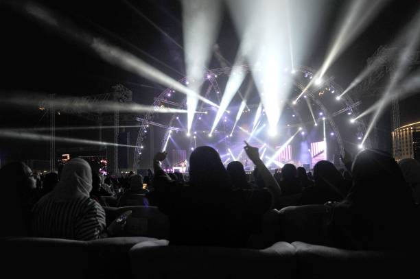 young friends having fun at music festival - concert stock pictures, royalty-free photos & images