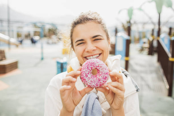 product box with nutrition facts label and magnifying lens - junk food stock illustrations