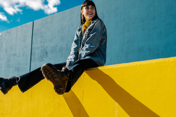 blonde frau im schwarzen anzug im studio. mannequin. - fashion stock-fotos und bilder